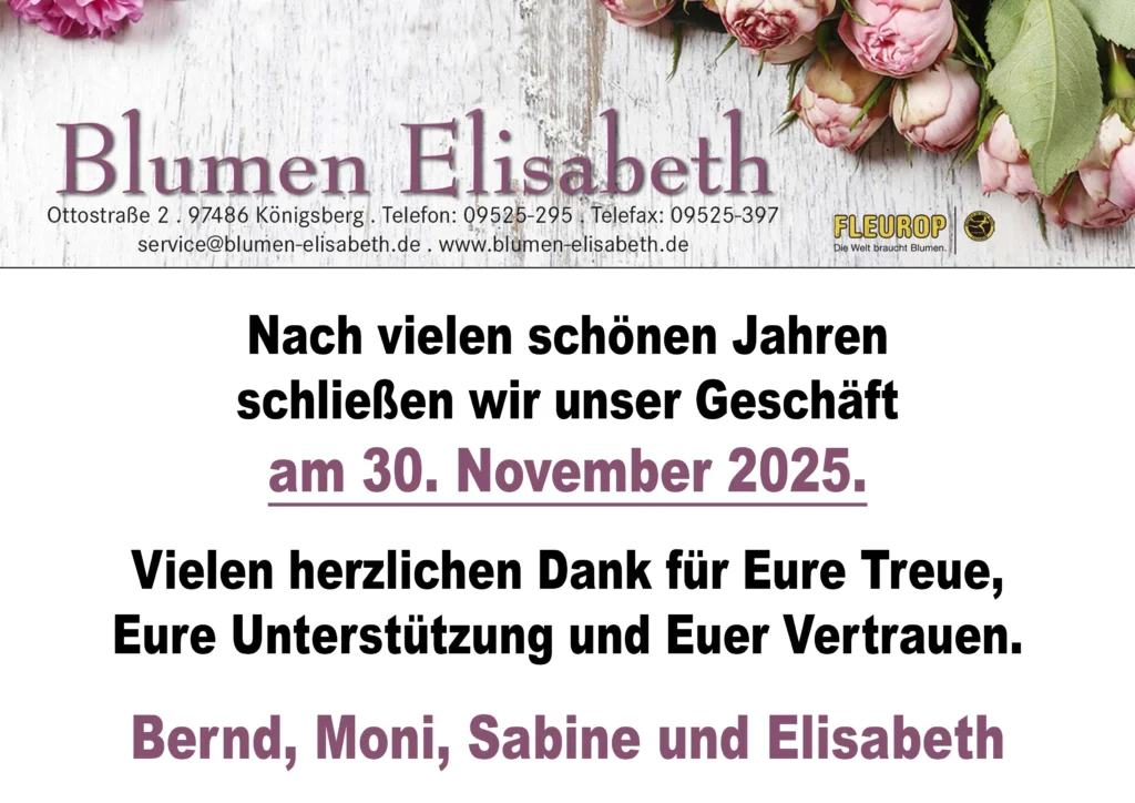 Blumen-Elisabeth ist ein Familienunternehmen mit langer Tradition. Über Blumen und Gestecke für jeden Anlass, bishin zu Freiland-, Garten- oder Topfpflanzen halten wir stets ein breites Sortiment für Sie bereit. Zu unseren weiteren Leistungen gehören Grab- und Gartenpflege.